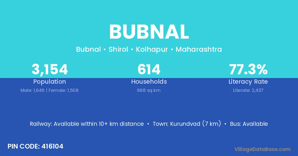 Kurundvad (7 km) is the nearest town to Bubnal village for major economic activities and is located approximately 7 km away.