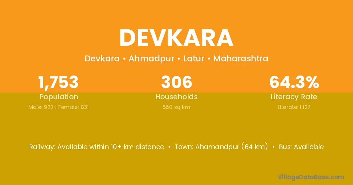 Devkara village has a total population of 1,753 people, of which 922 are males and 831 are females.