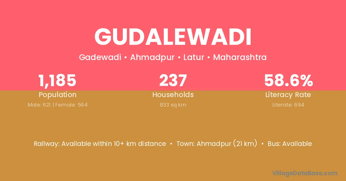 Gudalewadi village has a total population of 1,185 people, of which 621 are males and 564 are females.