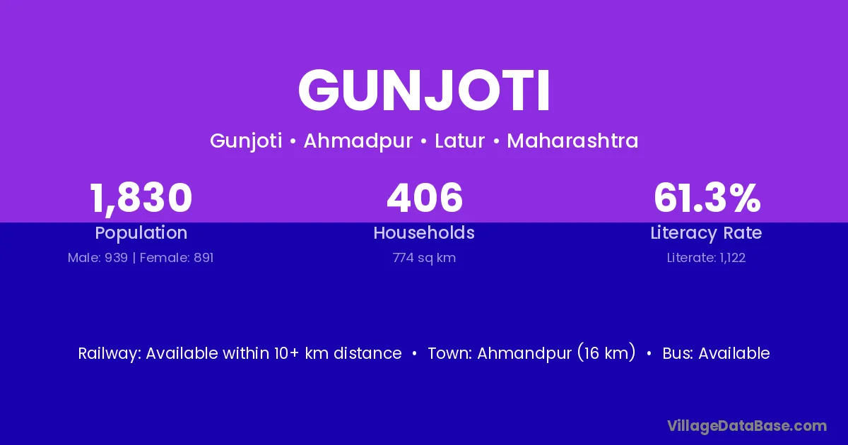 Ahmandpur (16 km) is the nearest town to Gunjoti village for major economic activities and is located approximately 16 km away.