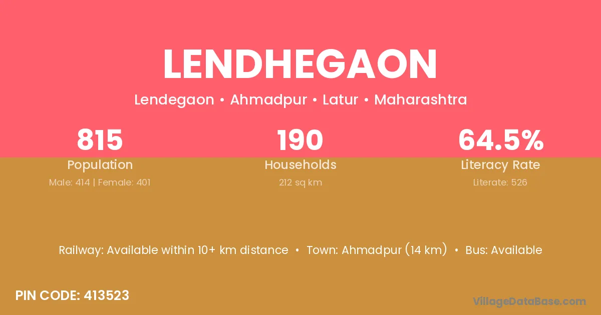Ahmadpur (14 km) is the nearest town to Lendhegaon village for major economic activities and is located approximately 14 km away.