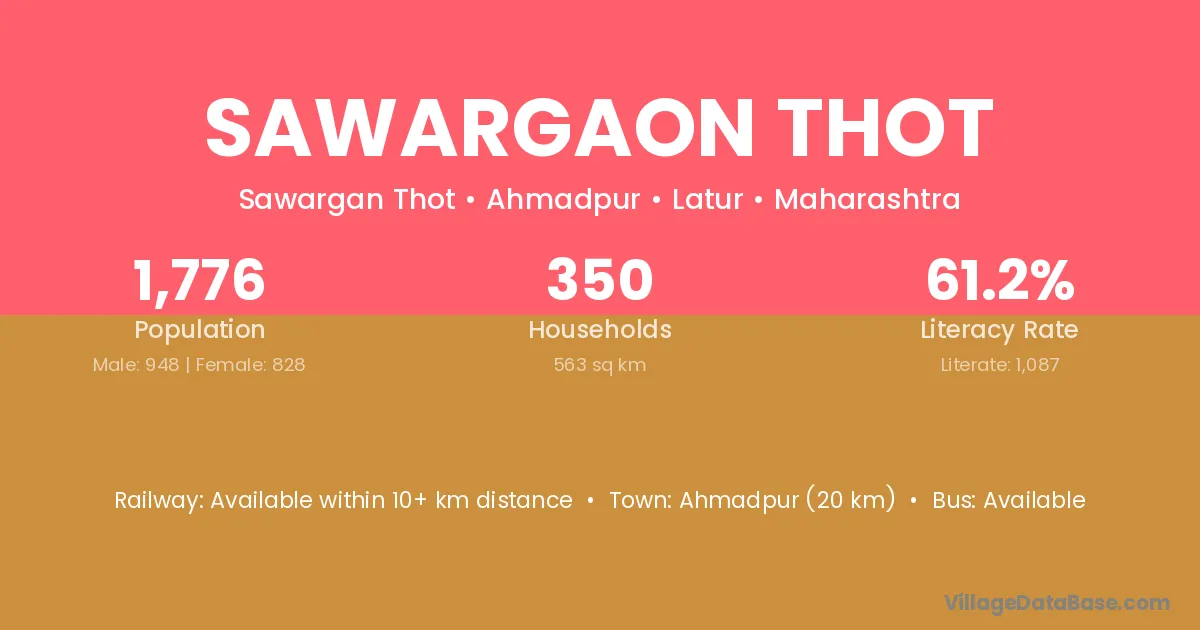 Ahmadpur (20 km) is the nearest town to Sawargaon Thot village for major economic activities and is located approximately 20 km away.