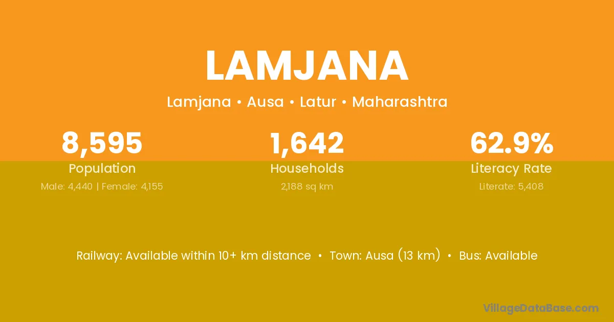 Ausa (13 km) is the nearest town to Lamjana village for major economic activities and is located approximately 13 km away.