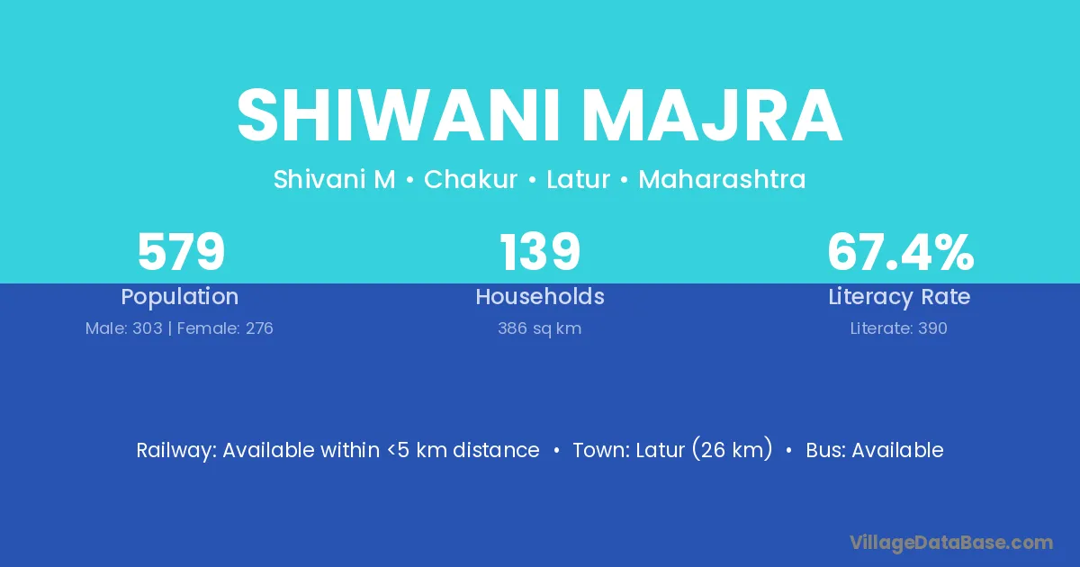 Latur (26 km) is the nearest town to Shiwani Majra village for major economic activities and is located approximately 26 km away.