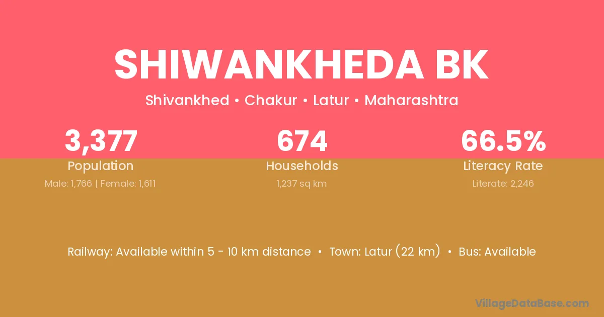 Latur (22 km) is the nearest town to Shiwankheda Bk village for major economic activities and is located approximately 22 km away.