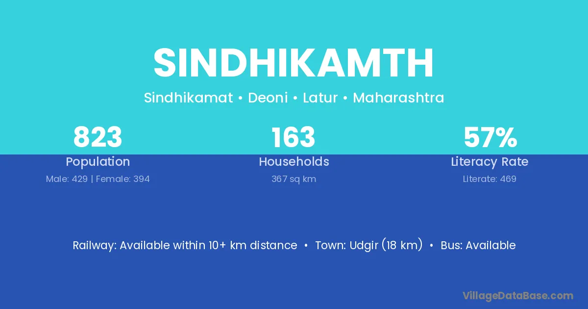 Udgir (18 km) is the nearest town to Sindhikamth village for major economic activities and is located approximately 18 km away.
