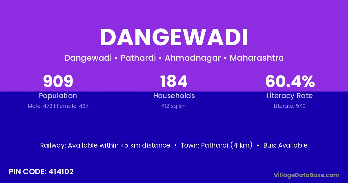 Nilanga (25 km) is the nearest town to Dangewadi village for major economic activities and is located approximately 25 km away.
