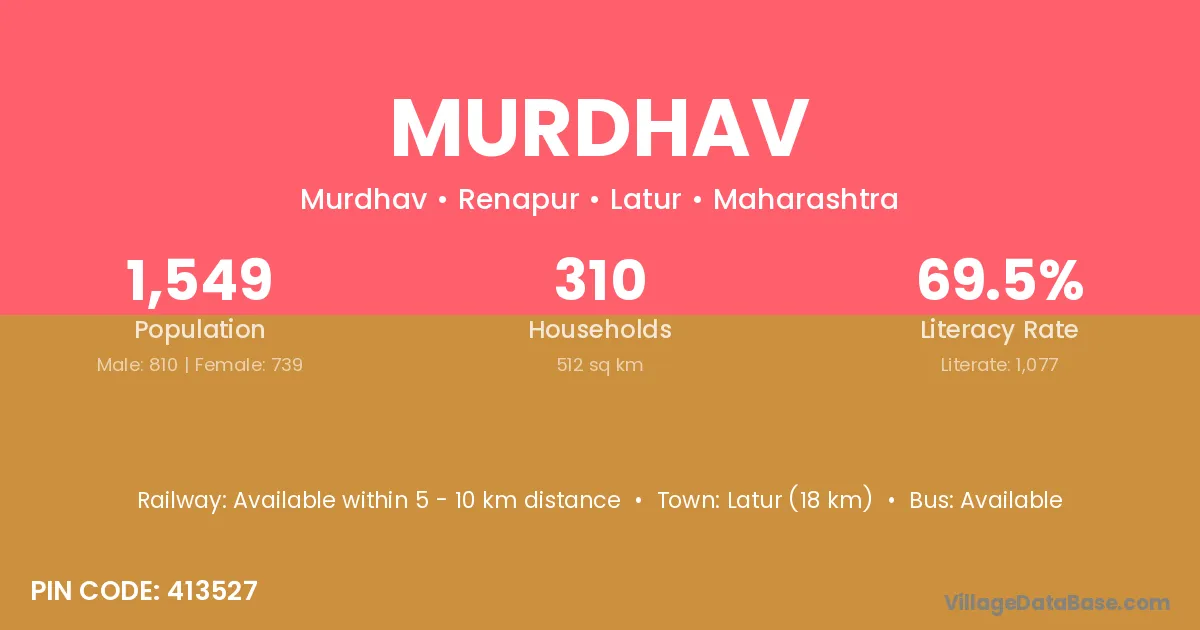 Latur (18 km) is the nearest town to Murdhav village for major economic activities and is located approximately 18 km away.