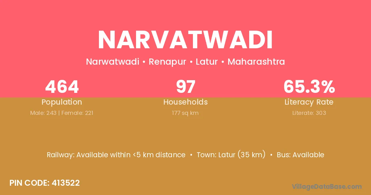 Narvatwadi village has a total population of 464 people, of which 243 are males and 221 are females.