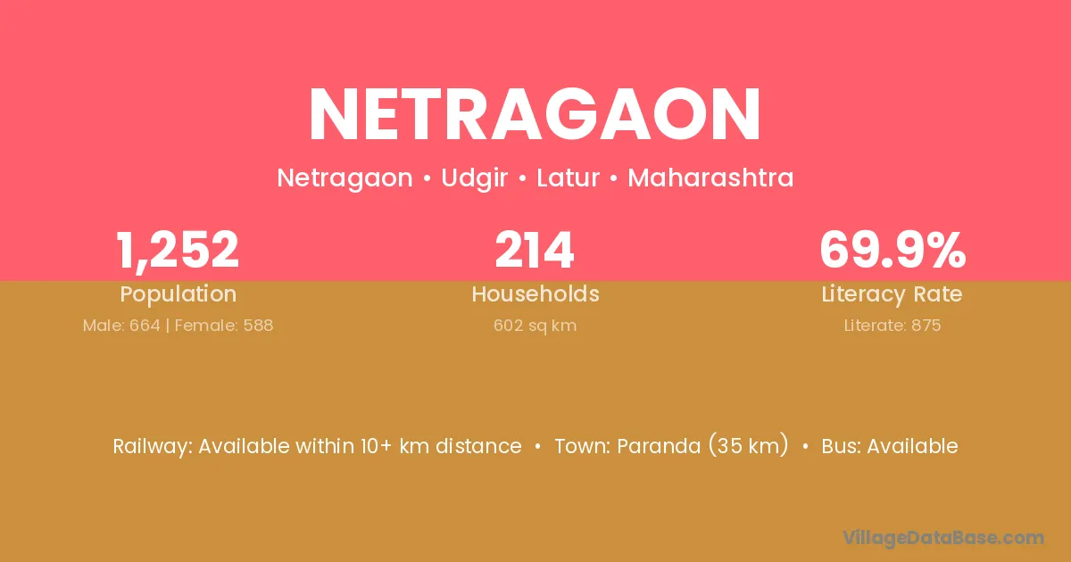 Paranda (35 km) is the nearest town to Netragaon village for major economic activities and is located approximately 35 km away.