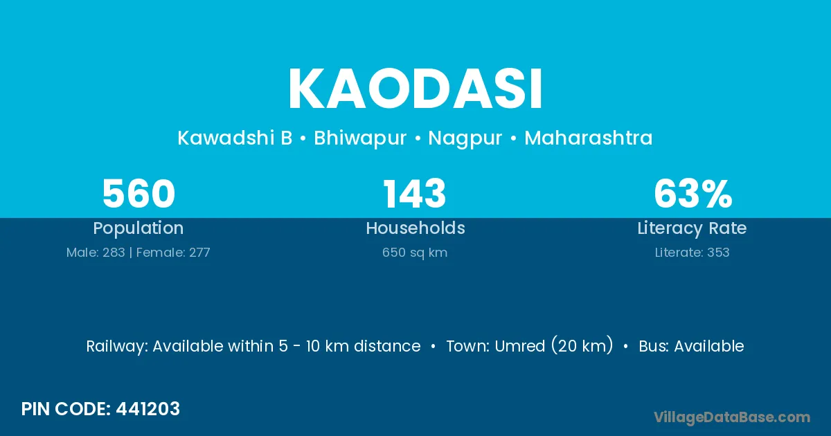 Umred (20 km) is the nearest town to Kaodasi village for major economic activities and is located approximately 20 km away.