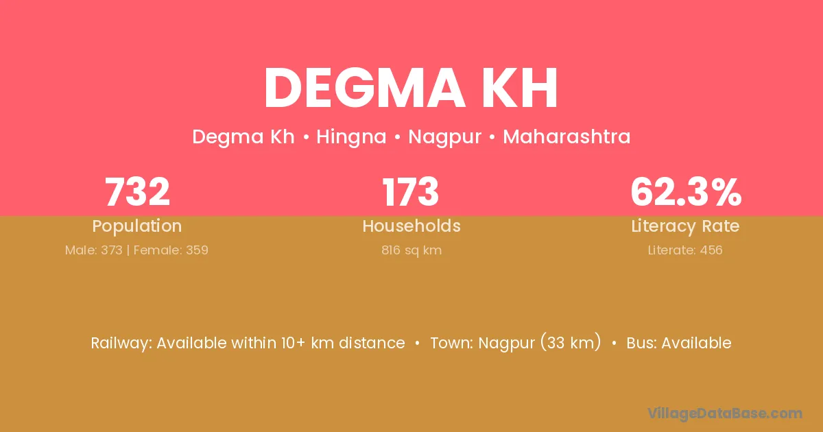Nagpur (33 km) is the nearest town to Degma Kh village for major economic activities and is located approximately 33 km away.