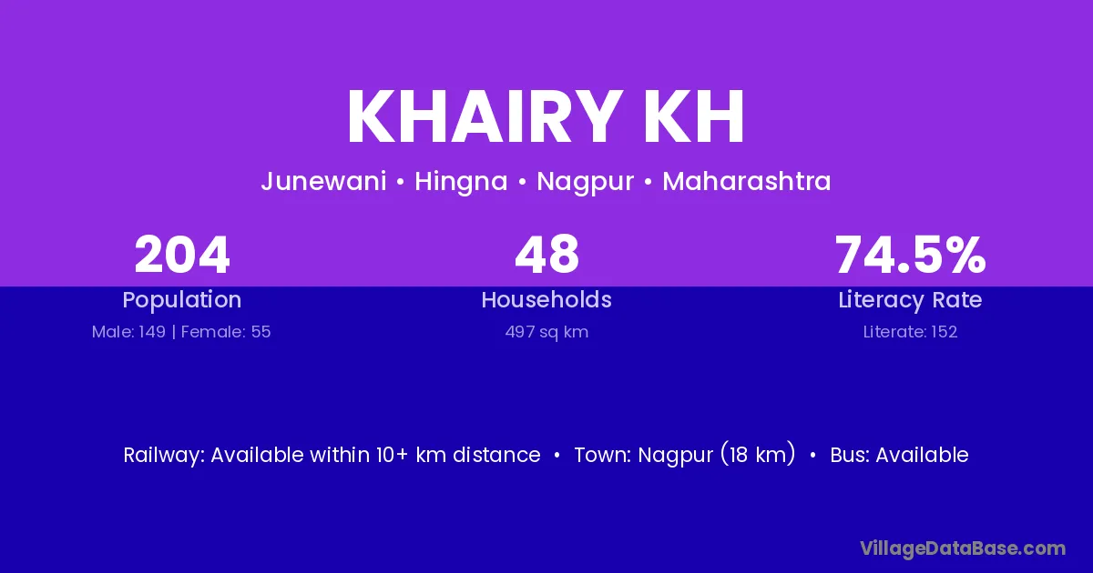 Nagpur (18 km) is the nearest town to Khairy Kh village for major economic activities and is located approximately 18 km away.