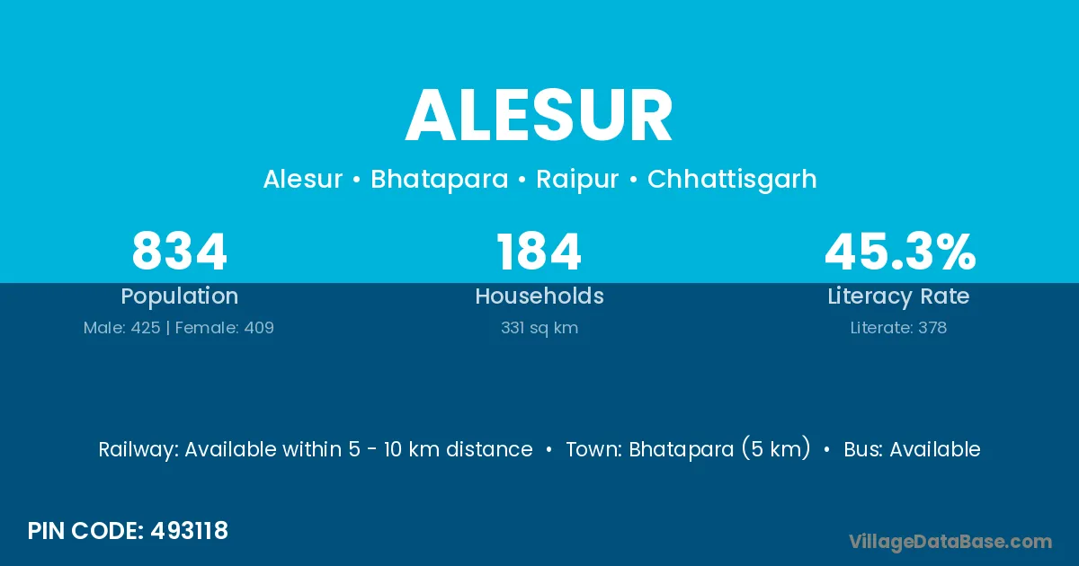 Alesur village has a total population of 496 people, of which 265 are males and 231 are females.