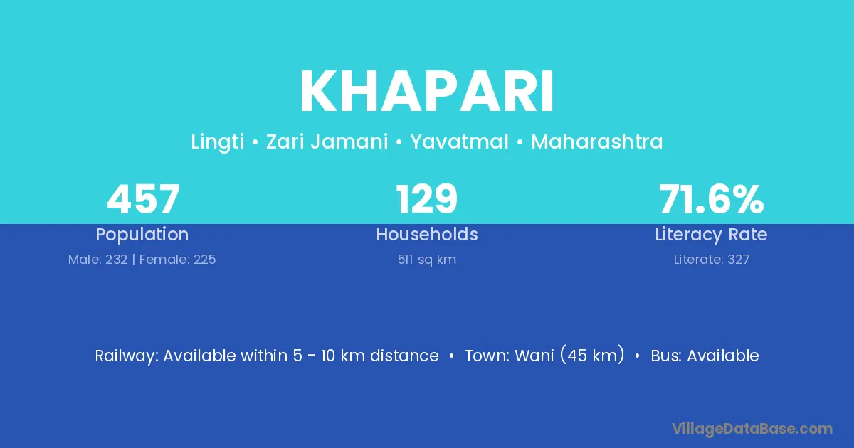Kalameshwar (10 km) is the nearest town to Khapari village for major economic activities and is located approximately 10 km away.