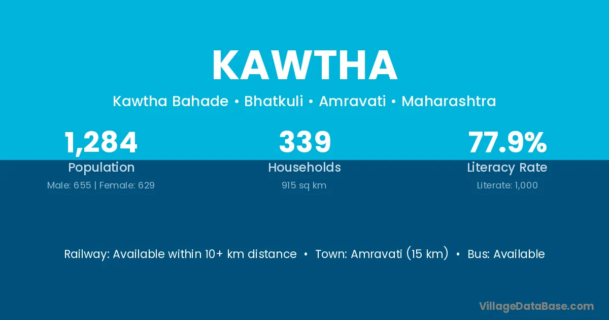 Kamptee (13 km) is the nearest town to Kawtha village for major economic activities and is located approximately 13 km away.