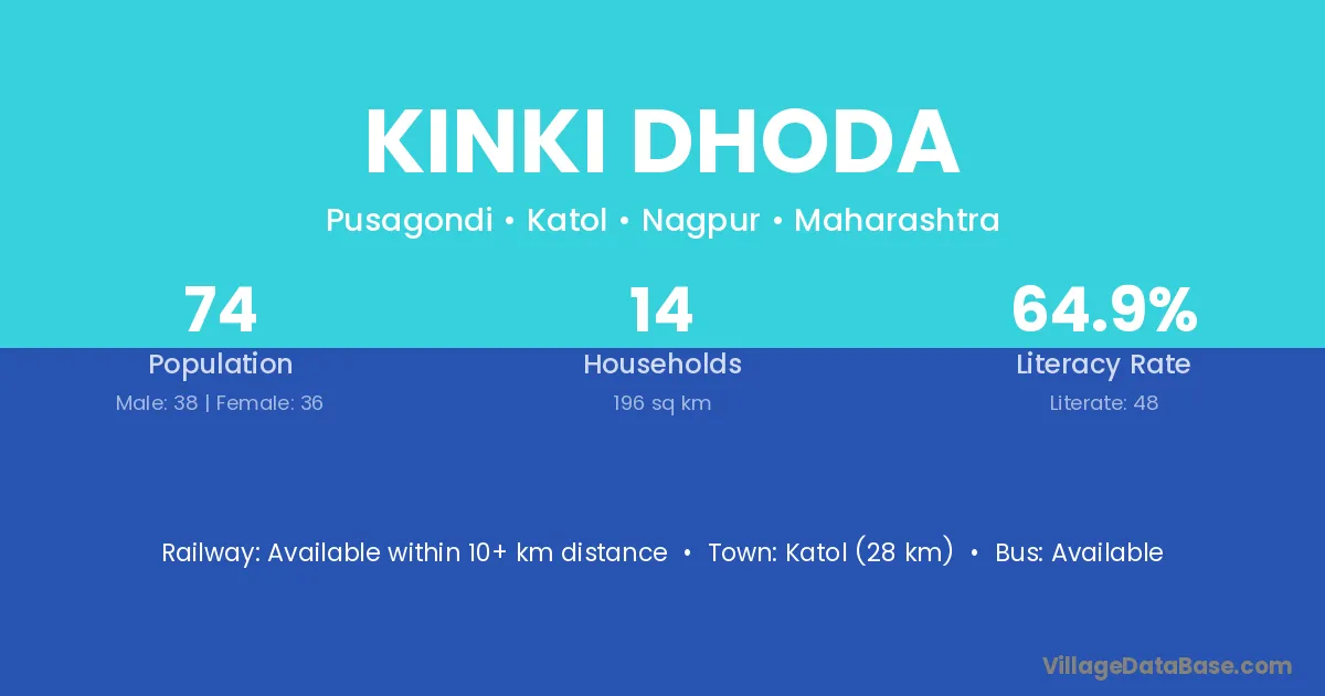 Katol (28 km) is the nearest town to Kinki Dhoda village for major economic activities and is located approximately 28 km away.