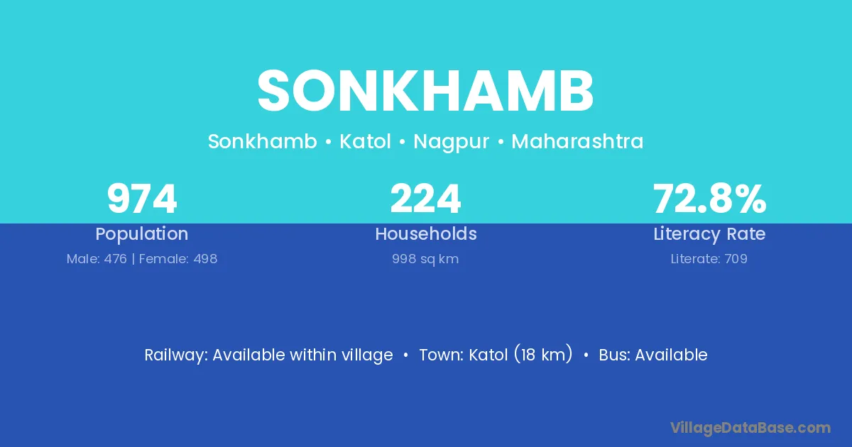 Sonkhamb village has a total population of 974 people, of which 476 are males and 498 are females.