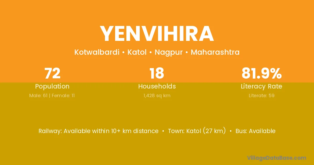 Katol (27 km) is the nearest town to Yenvihira village for major economic activities and is located approximately 27 km away.