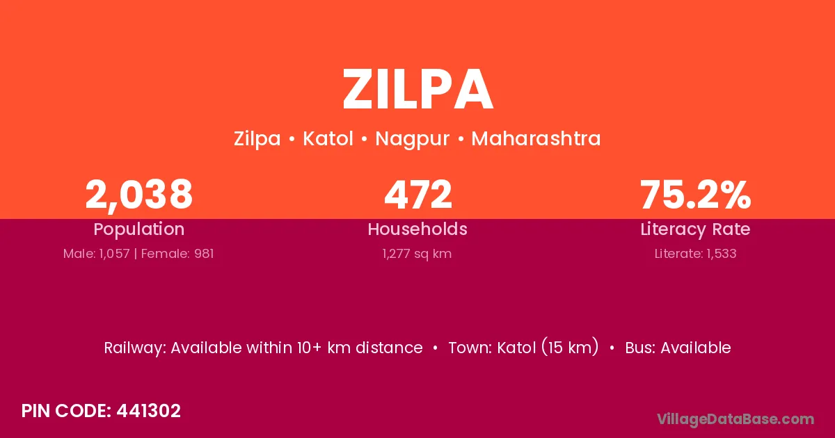 Katol (15 km) is the nearest town to Zilpa village for major economic activities and is located approximately 15 km away.