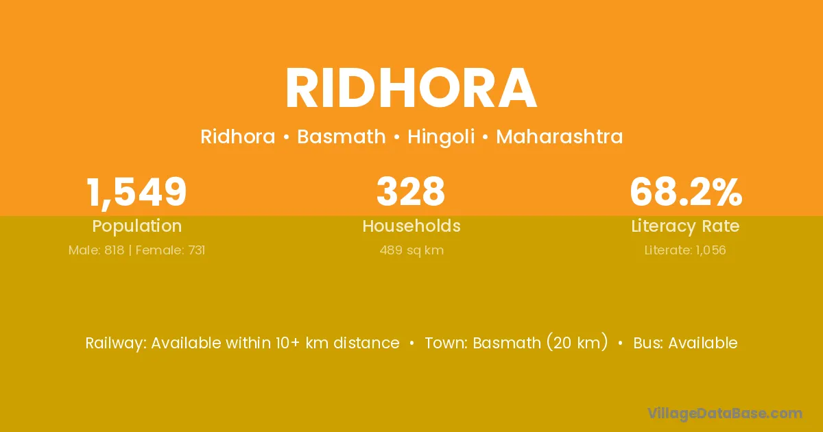 Nagpur (60 km) is the nearest town to Ridhora village for major economic activities and is located approximately 60 km away.