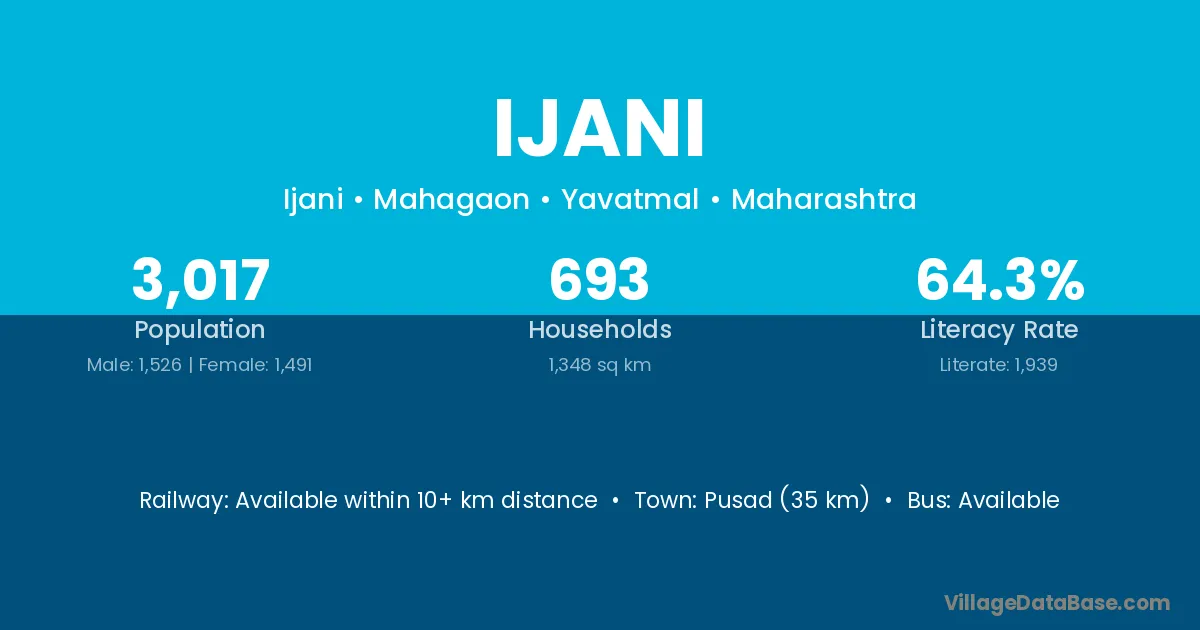 Bhandara (21 km) is the nearest town to Ijani village for major economic activities and is located approximately 21 km away.