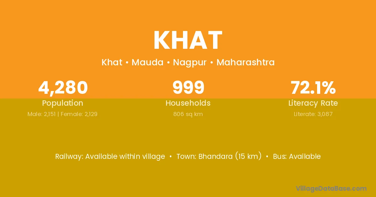 Bhandara (15 km) is the nearest town to Khat village for major economic activities and is located approximately 15 km away.