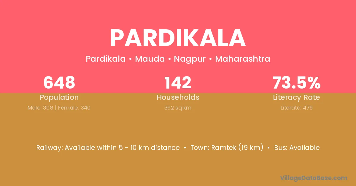 Ramtek (19 km) is the nearest town to Pardikala village for major economic activities and is located approximately 19 km away.