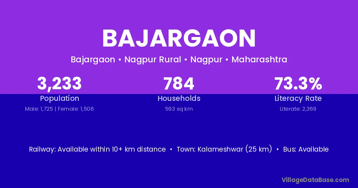 Kalameshwar (25 km) is the nearest town to Bajargaon village for major economic activities and is located approximately 25 km away.
