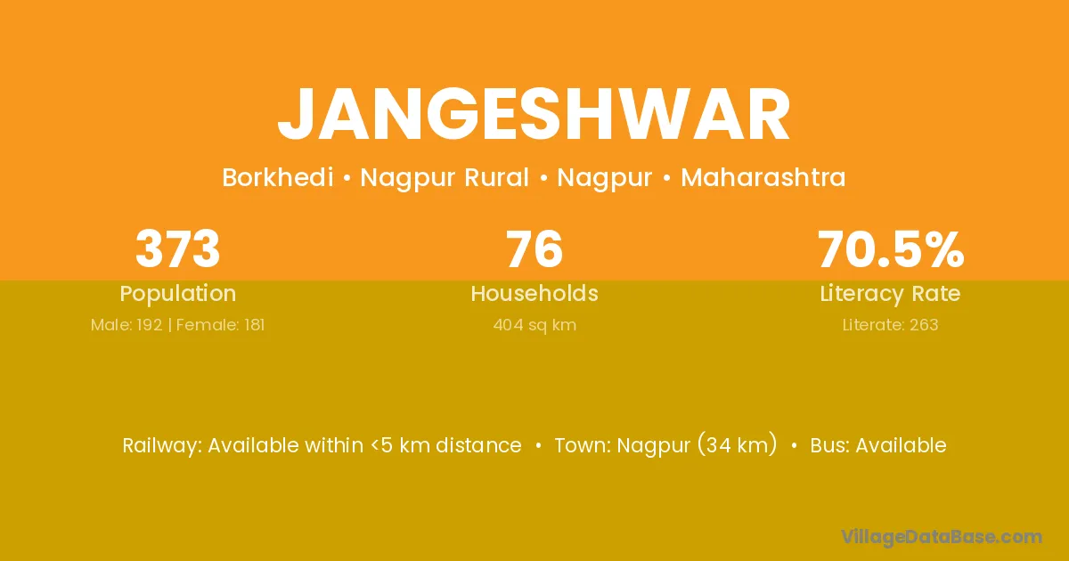 Nagpur (34 km) is the nearest town to Jangeshwar village for major economic activities and is located approximately 34 km away.