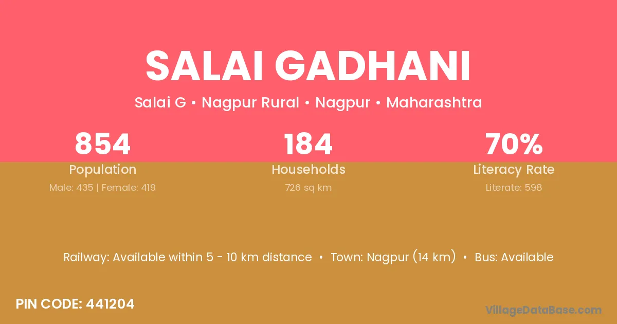 Nagpur (14 km) is the nearest town to Salai Gadhani village for major economic activities and is located approximately 14 km away.