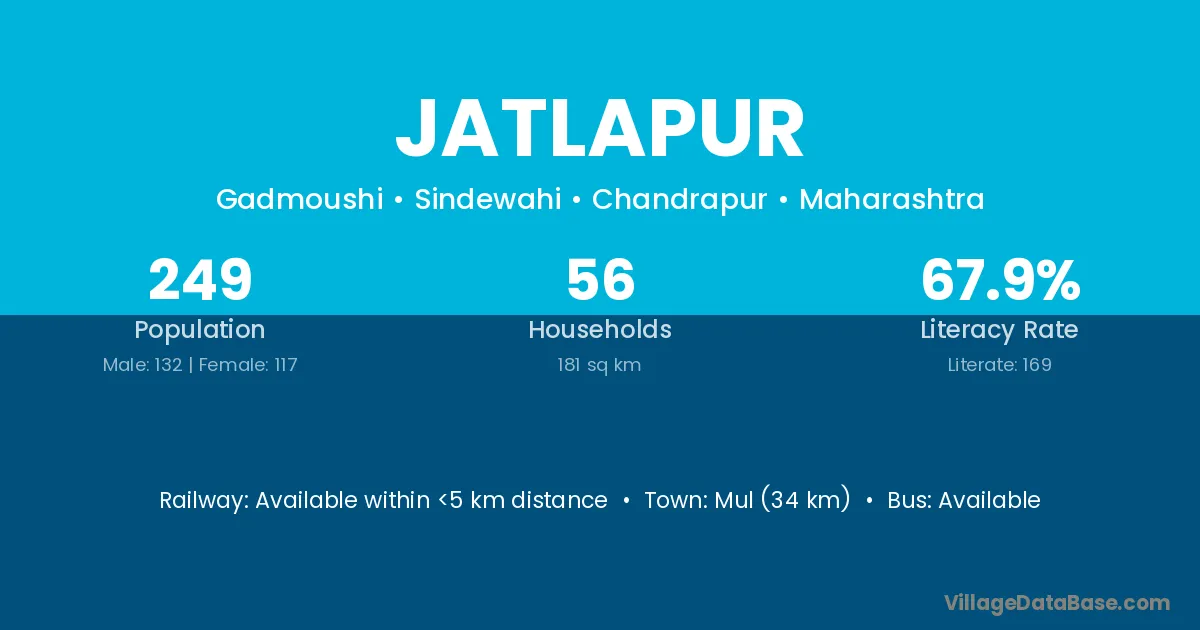Katol (30 km) is the nearest town to Jatlapur village for major economic activities and is located approximately 30 km away.