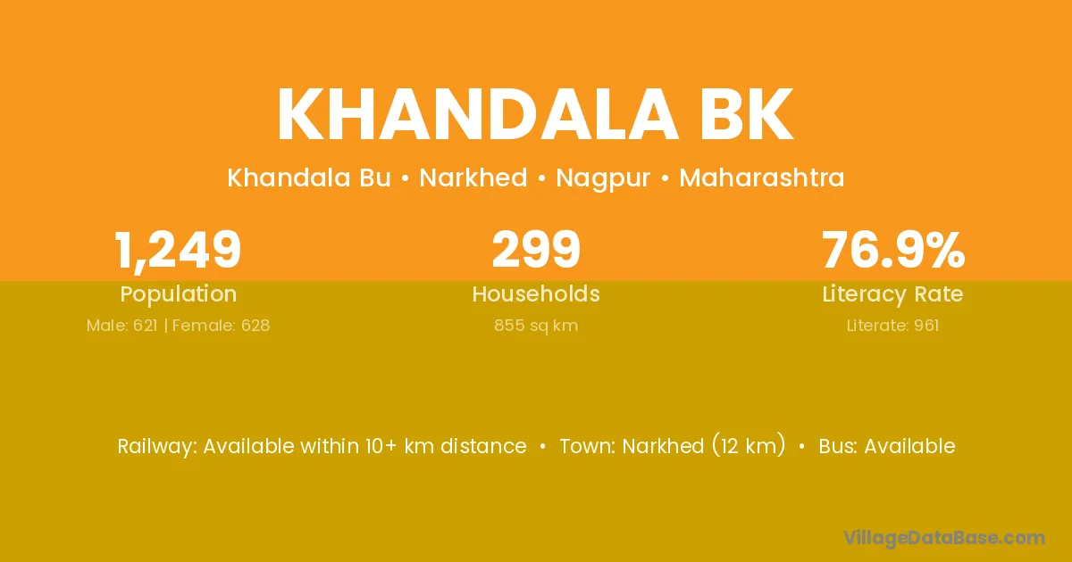 Narkhed (12 km) is the nearest town to Khandala Bk village for major economic activities and is located approximately 12 km away.