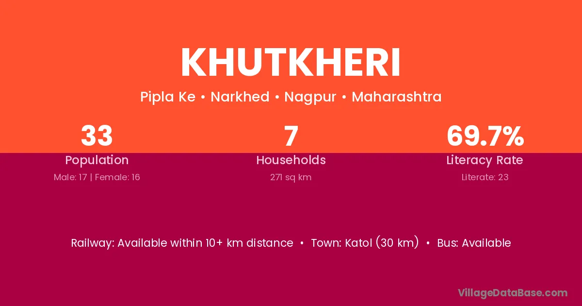 Katol (30 km) is the nearest town to Khutkheri village for major economic activities and is located approximately 30 km away.