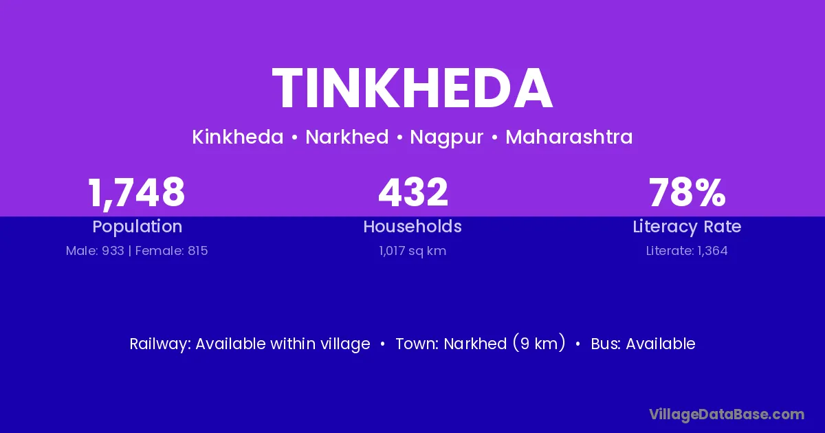Narkhed (9 km) is the nearest town to Tinkheda village for major economic activities and is located approximately 9 km away.