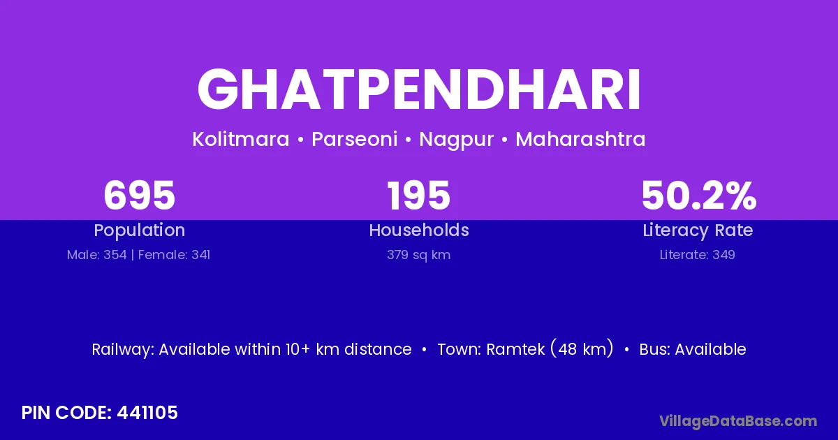 Ramtek (48 km) is the nearest town to Ghatpendhari village for major economic activities and is located approximately 48 km away.