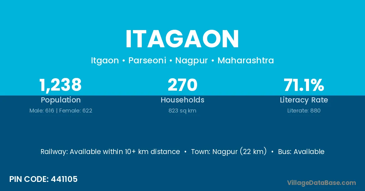 Nagpur (22 km) is the nearest town to Itagaon village for major economic activities and is located approximately 22 km away.
