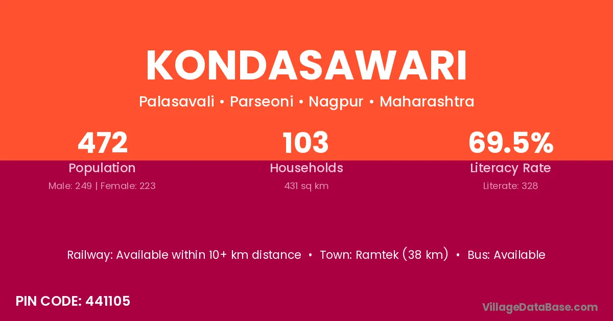 Ramtek (38 km) is the nearest town to Kondasawari village for major economic activities and is located approximately 38 km away.