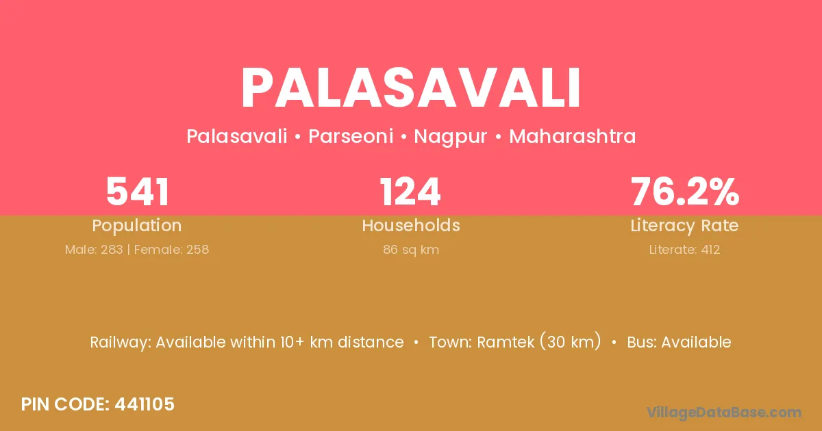 Ramtek (30 km) is the nearest town to Palasavali village for major economic activities and is located approximately 30 km away.