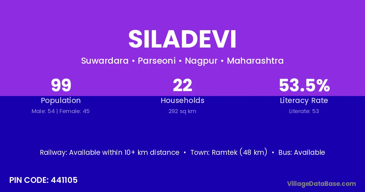 Ramtek (48 km) is the nearest town to Siladevi village for major economic activities and is located approximately 48 km away.