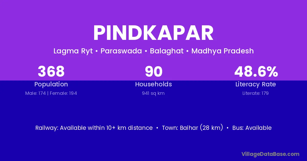 Ramtek (50 km) is the nearest town to Pindkapar village for major economic activities and is located approximately 50 km away.