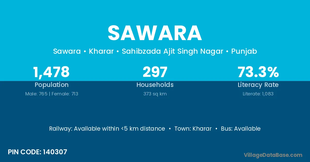 The literacy rate of Sawara village is 71.02%. Male literacy stands at 78.67% and female literacy at 62.66%.