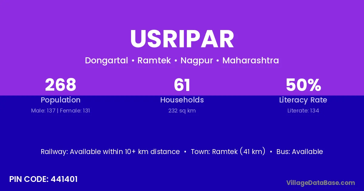 Ramtek (41 km) is the nearest town to Usripar village for major economic activities and is located approximately 41 km away.