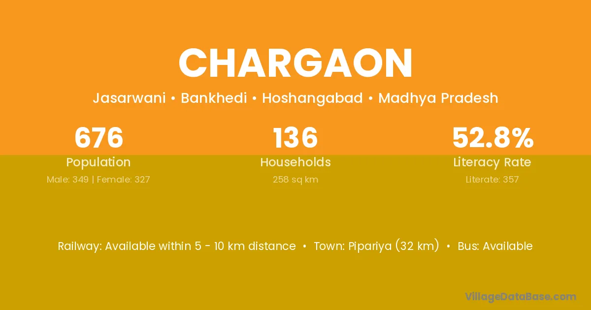 Chargaon village has a total population of 465 people, of which 238 are males and 227 are females.
