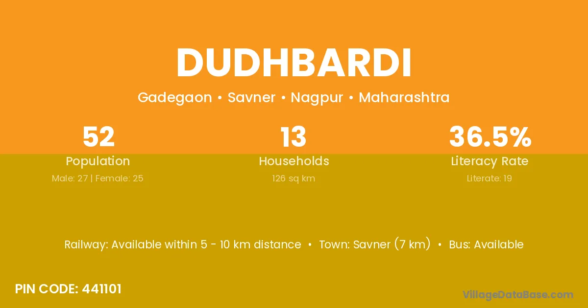 Savner (7 km) is the nearest town to Dudhbardi village for major economic activities and is located approximately 7 km away.