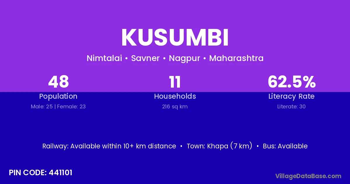 According to Census 2011 information, the village code of Kusumbi village is 441101.