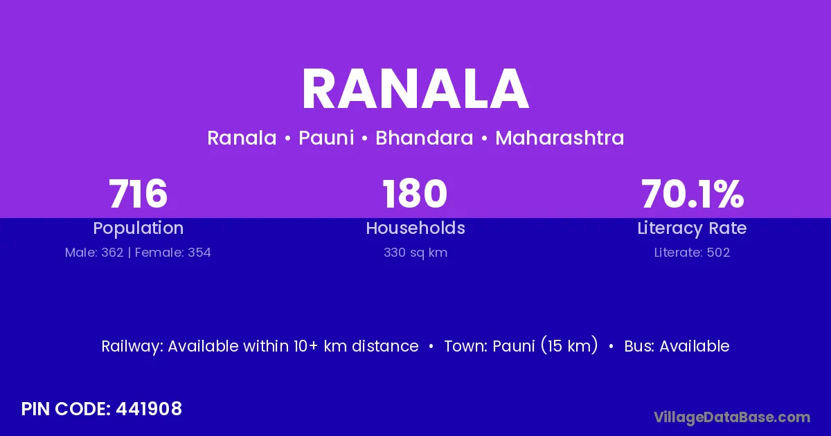According to Census 2011 information, the village code of Ranala village is 441113.
