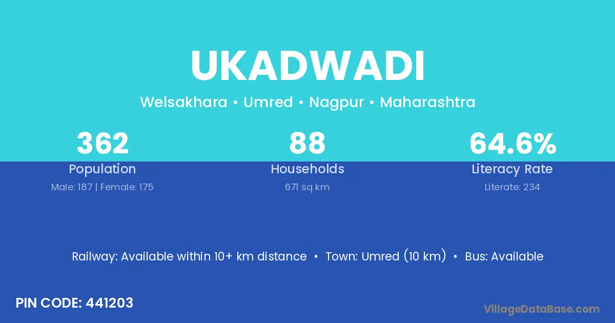 Umred (10 km) is the nearest town to Ukadwadi village for major economic activities and is located approximately 10 km away.