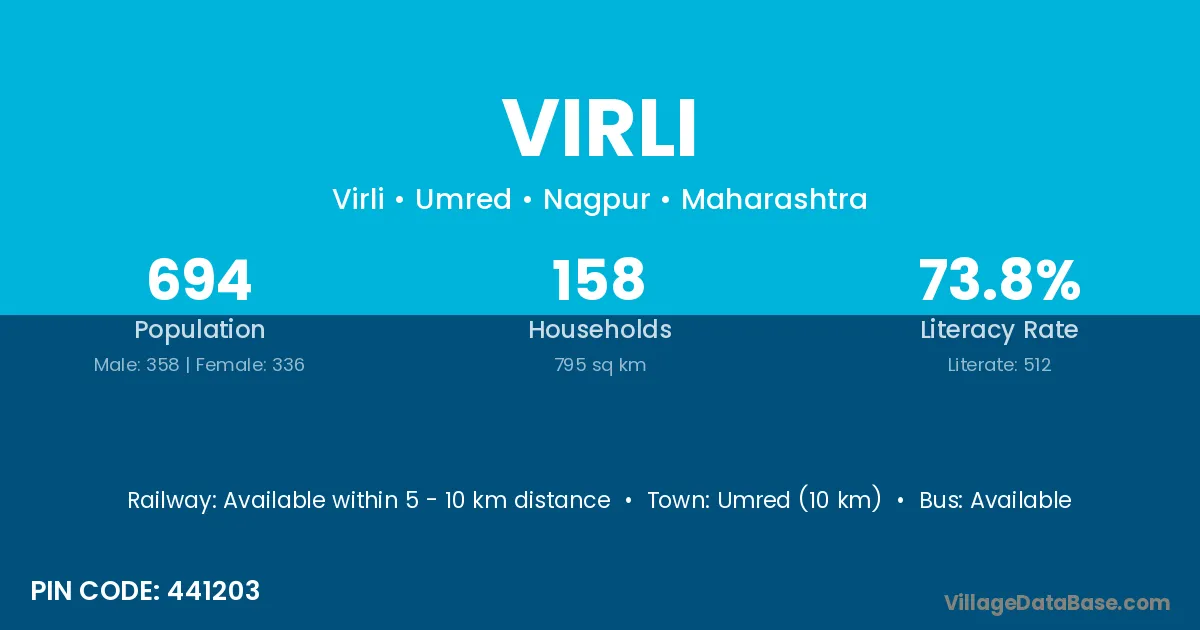 Umred (10 km) is the nearest town to Virli village for major economic activities and is located approximately 10 km away.