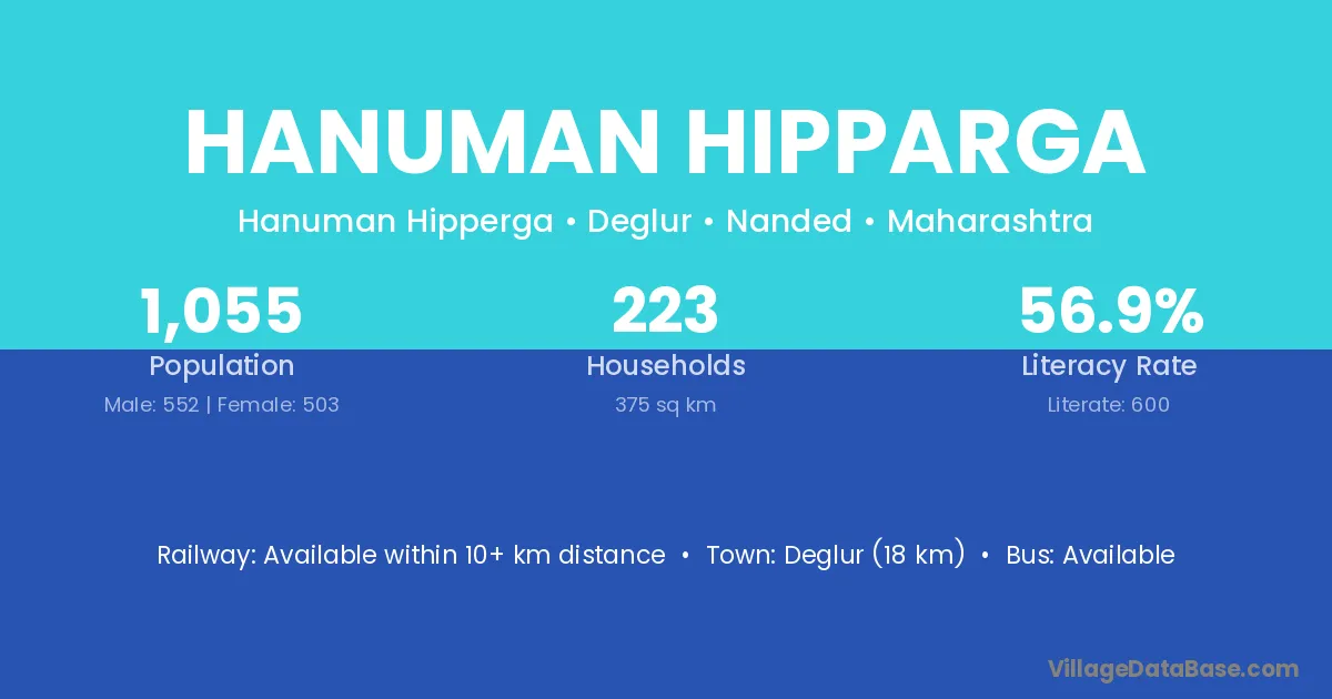 Deglur (18 km) is the nearest town to Hanuman Hipparga village for major economic activities and is located approximately 18 km away.